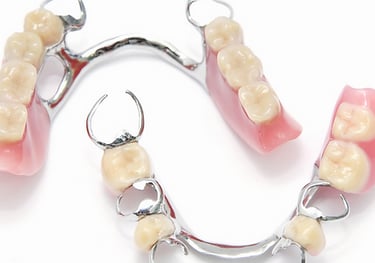 Próteses com grampos metálicos para repor alguns dentes perdidos na boca